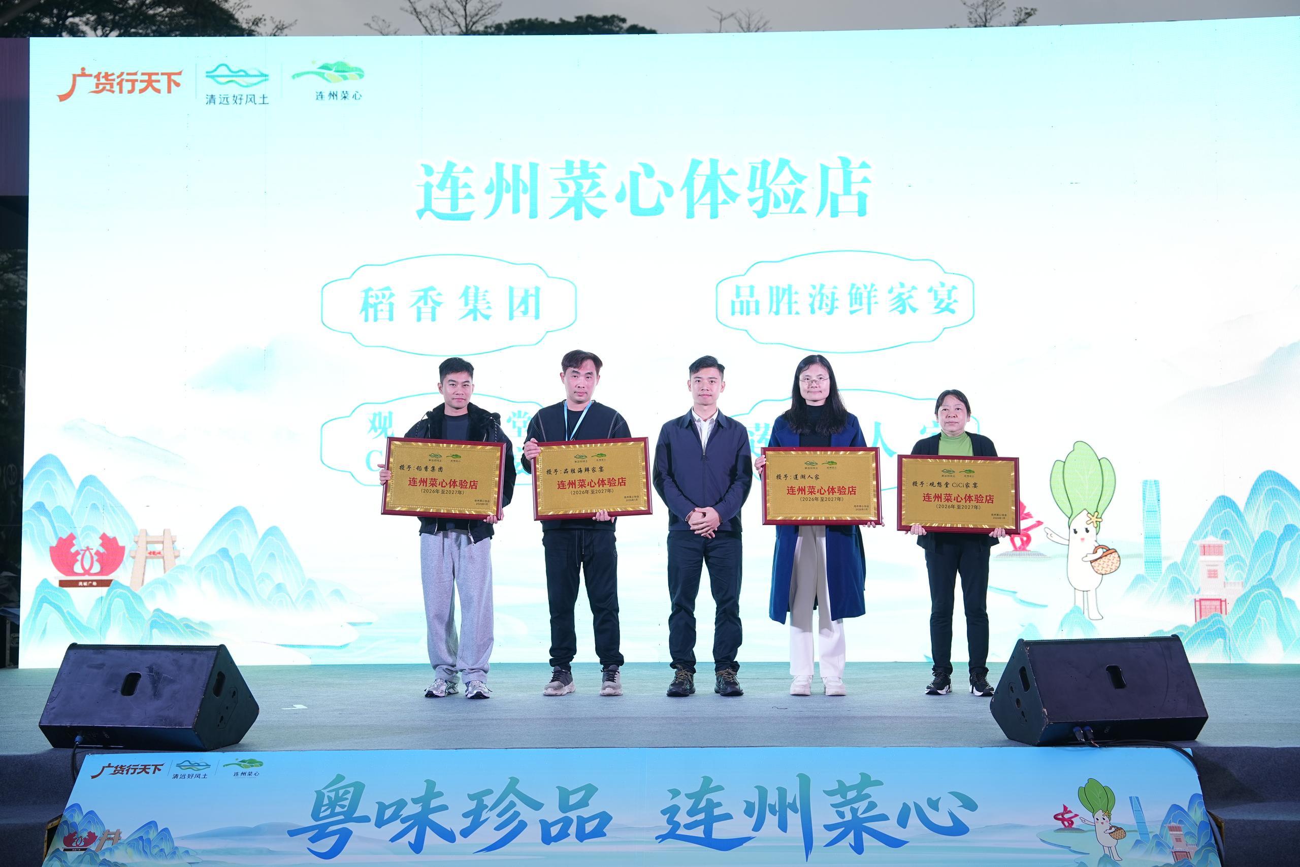 值得注意的是,活动当天,稻香集团、品胜海鲜家宴、观想堂CiCi家宴、莲湖人家等东莞餐饮品牌、企业,获颁“连州菜心体验店”及“连州菜心金牌经销商”牌匾。