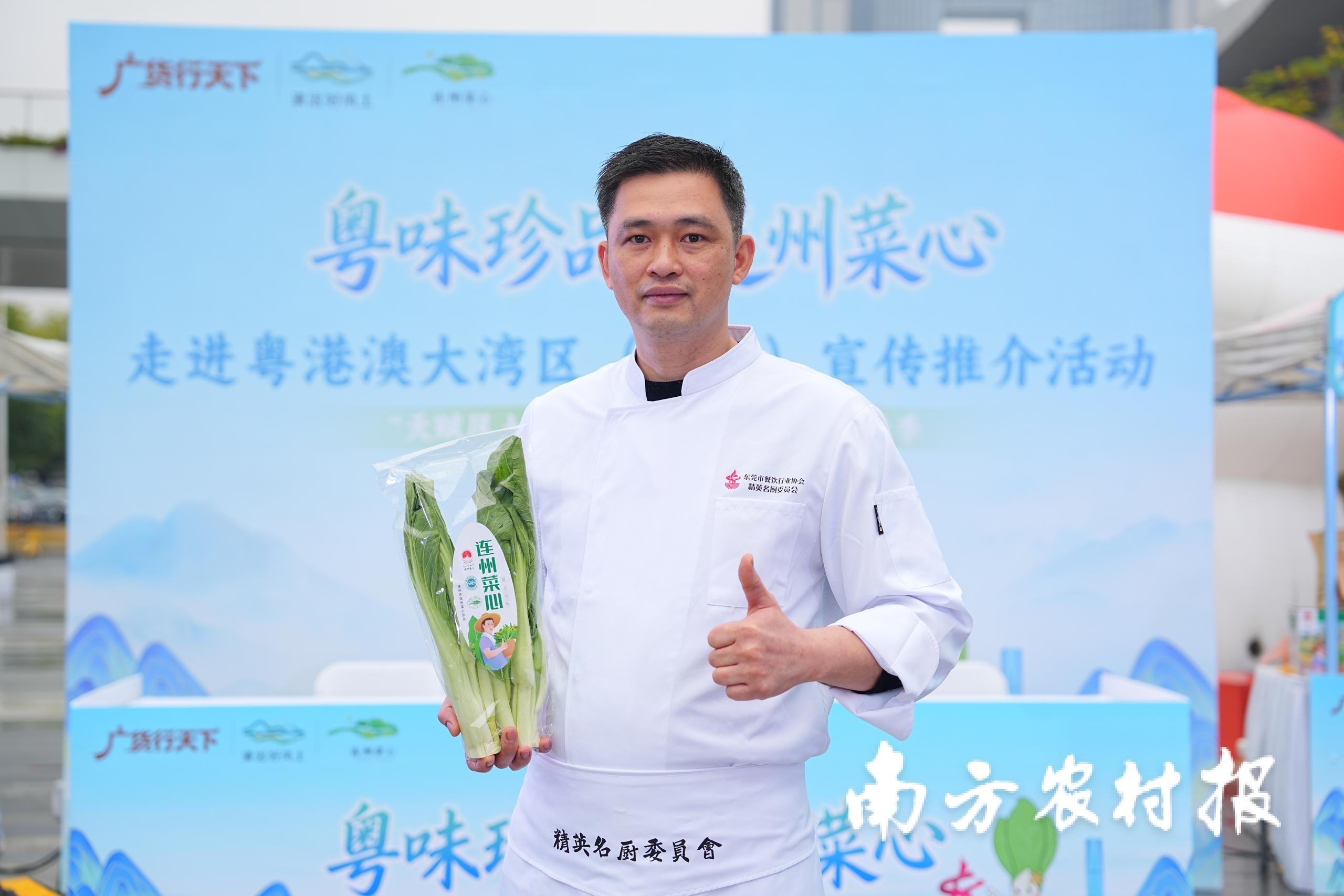 东莞喜来登酒店中餐行政总厨苏铎锋表示,连州菜心品质好、甜味足,是东莞市民喜爱的蔬菜之一。